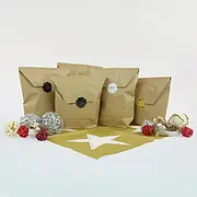 Die Dekoration und die Tüten sind nicht im Lieferumfang enthalten. Die 24 Papiertüten können Sie optional zu den Aufklebern bestellen. Jede Kraftpapiertüte ist 26,5 x 17 cm groß.