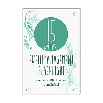 Die Acrylplatte wird mit der Jahreszahl und Ihrem Wunschtext gefertigt. Das petrolfarbige Motiv passt zu allen möglichen Jubiläen. Mit dem richtigen Wunschtext machen Sie ein Geburtstagsschild, eine Auszeichnung zum Firmenjubiläum oder eine schöne Aufmerksamkeit zum Hochzeitstag daraus. Der gefrostete Milchglashintergrund verleiht dem Schild einen edlen Look. Optional kann ein Aufsteller aus Metall oder Holz bestellt werden.