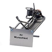 Optional liefern wir das Schraubenmännchen mit einem angehängten Schild, auf dem Ihr Wunschtext gedruckt wird. An dieses Aluminiumschild bringen wir mit zwei Schrauben eine Kette an, womit es an das Schraubenmännchen gehängt werden kann. Wir beschriften dieses Schild mit einem Geburtstagsgruß, einem Glückwunschtext zur bestandenen Prüfung, einem Gratulationstext zur Hochzeit, mit Worten der Auszeichnung zum Jubiläum und zur Pensionierung oder mit jedem anderen Spruch Ihrer Wahl.