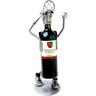 Der Weinflaschenhalter Tennisspieler ist ein schönes Geschenk für Vereinsmitglieder. Schenken Sie die Stahlfigur einem Sportsfreund. Denn Geschenke passend zum Hobby verbinden.